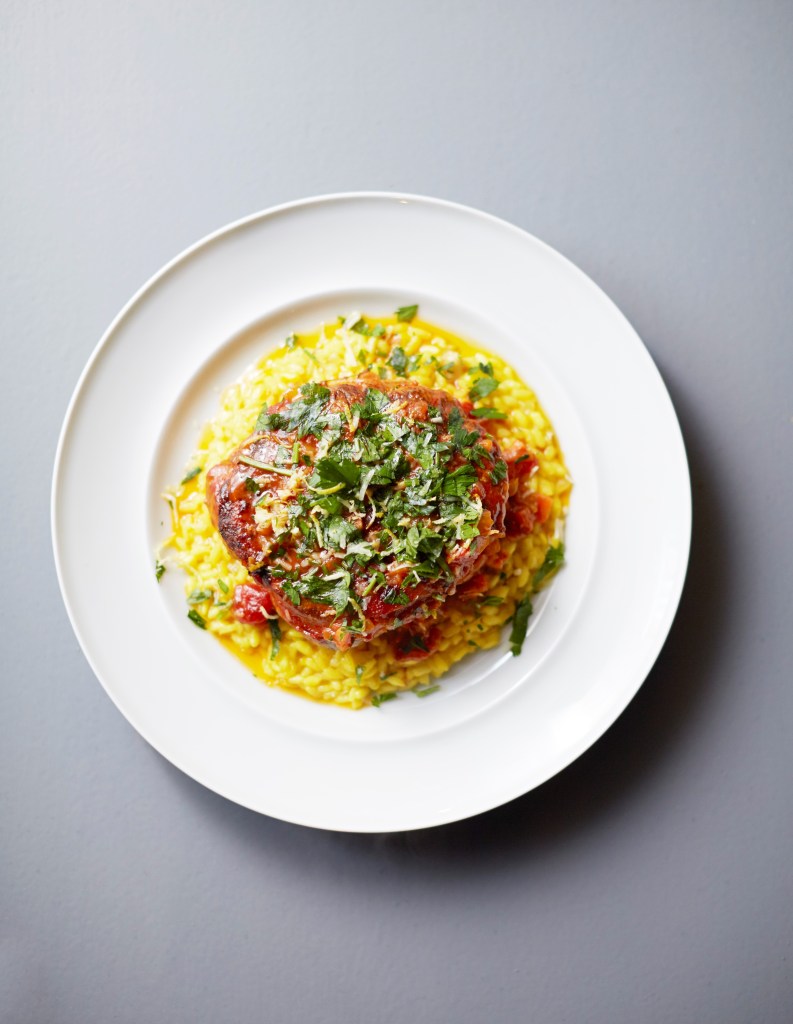 Remove shanks to a serving dish and keep warm. Taste sauce and season with salt and pepper if necessary. If the sauce is too thin, boil down the sauce for several minutes. Strain the sauce and then pour over the shanks and top with a little of the gremolata.