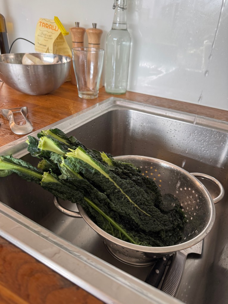 - 250g cavolo nero (Tuscan kale), stems removed, leaves chopped