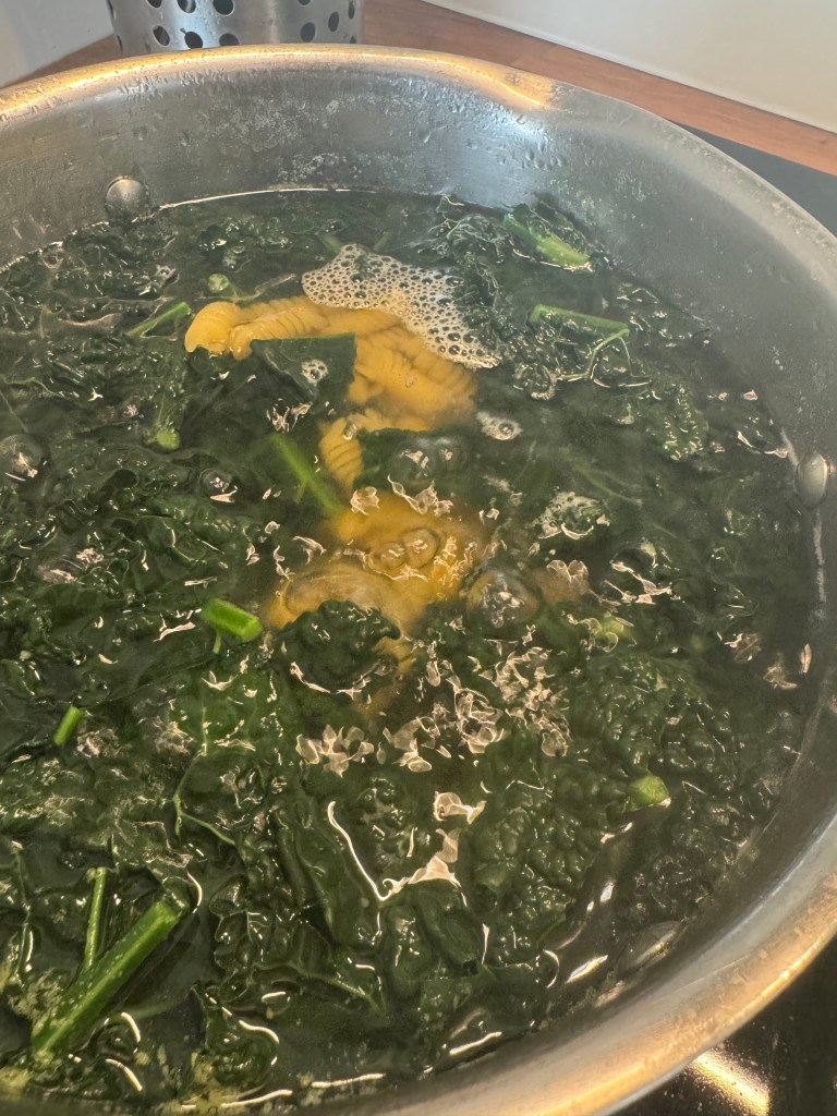 Drain the pasta and kale together.