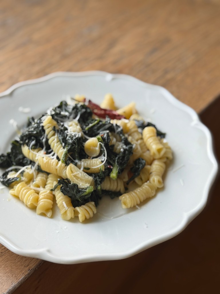Pasta con Cavolo Nero (Tuscan Kale) is a hearty, rustic Italian dish perfect for vegetarians. Featuring tender pasta, Tuscan kale, olive oil, sautéed garlic and a hint of chili, it’s simple yet packed with flavour. Finished with Parmesan, and optional lemon zest and toasted breadcrumbs, this dish balances earthy, and savoury notes beautifully. Quick to prepare, it’s a wholesome meal that’s both comforting and nutritious—ideal for any weeknight dinner.
